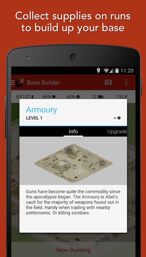 KEEP THE SURVIVORS ALIVEYou automatically collect items like medicine, batteries, and ammo while running - but when you're back home, who needs them more: the soldiers or the doctors? Which buildings need extra defenses? It’s up to you - and the bigger your base, the more missions you can play.